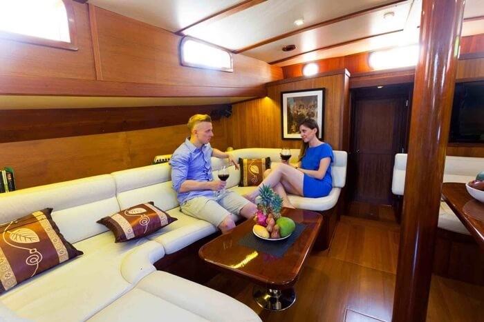 SY Jubilaeum features a spacious saloon with two seperate seating areas. This is a perfect spot for you and your companions to share interesting travel stories with each other.