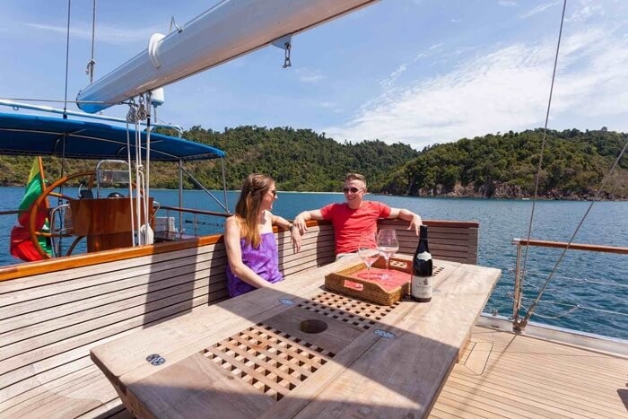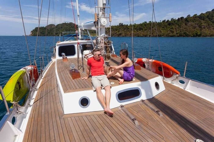 With elegant curves, SY Jubilaeum is like a beautiful ketch that steps out from a timeless sketch. Designed and constructed by the famous boat engineers of Kemeu Engineering from New Zealand. She is a Don Brooke Pilot House 77 which as a steel hull with full length keel, polished teak deck and incredibly intricate wooden structure all through the ship. SY Jubilaeum went under an almost complete renovation which transform her from the old vessel into a new and improved yachts that can accommodate up to 6 guests.