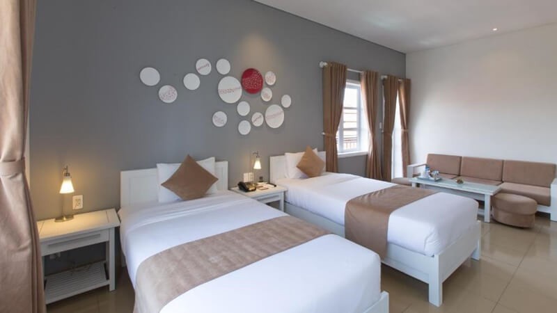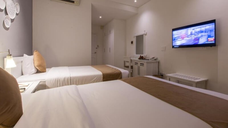 The staff at this hotel was spectacularly friendly and welcoming, especially the hotel manager who took extra time to ensure that your stay was okay. The rooms look newly furnished. We had a deluxe double and the children had a deluxe twin. Both rooms were large and clean, with great showers which is always a plus. The breakfast buffet was lovely, just missed not having bacon or western coffee - minor personal wishes. We spent our last day on a day trip and they kindly kept our luggage safe and then arranged a taxi for us to return to the airport. Highly recommend this hotel - great location.