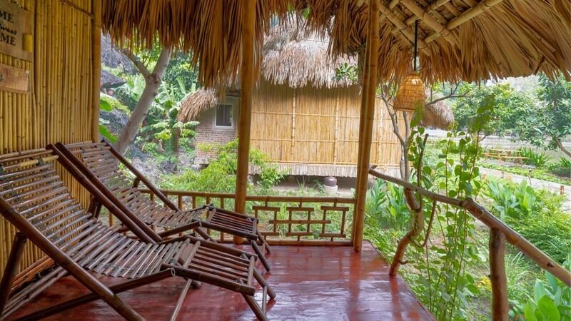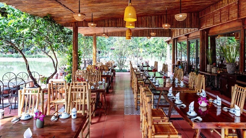 The location is amazing and peaceful. So remote and quiet, I had the best night sleep in a long time! The bamboo bungalows are spacious and clean, however if it gets cold, make sure to pack some warm clothes as there is no heating. The staff were very friendly and helpful, organising a taxi driver for a day to visit the interesting spots in Ninh Binh. Bikes and scooters are available to use anytime. All the food is fresh from the garden ( including the chicken and the fish which is fished from the lake), but I would recommend sticking to the Vietnamese specialities as they were the best. The Pho and the friend spring rolls were the best! Would love to come back one day in the warmer months.