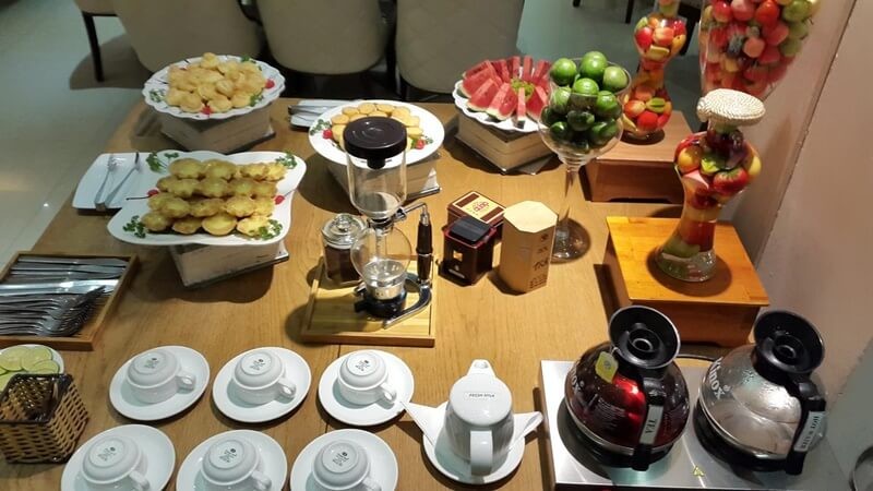 Breakfast: good variety, ranging from Vietnamese (without doubt, Pho every morning and our usual dish as well, pork, chicken, fried banana), Asian (noodles, beehoon, porridge with condiments), veg, Western (spaghetti, rotated with French toast, omelette, hard boiled eggs, sausages, bacon, bread n toast, with the usual spread). I can’t remember everything as I focus on my usual favourites but all 5 female travellers (get the hint??) agree that the breakfast is excellent esp for the price that we paid.
