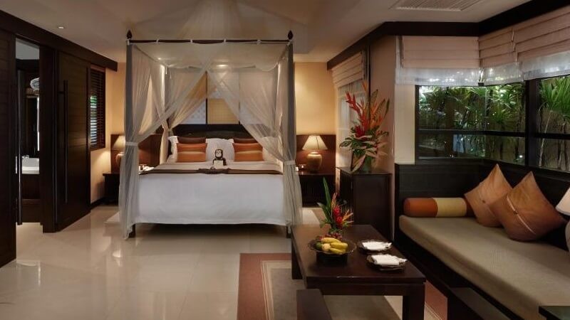Furnished with Contemporary Thai style with a hip roof, this spacious interior includes a seating area. The large bathroom features his and her sink, a separate bathtub and a shower. It has a large terrace with a set of table and chairs allowing an open space for smoking. Please note that a child sharing an existing bed with parents will be charged for breakfast separately at THB 442 per person per meal. Please be informed than an extra bed for a child under under age of 12 will be charged at THB 1,900 per night. A child over the age of 12 will be charged as adult at THB 2,300 per night. The rates include breakfast.