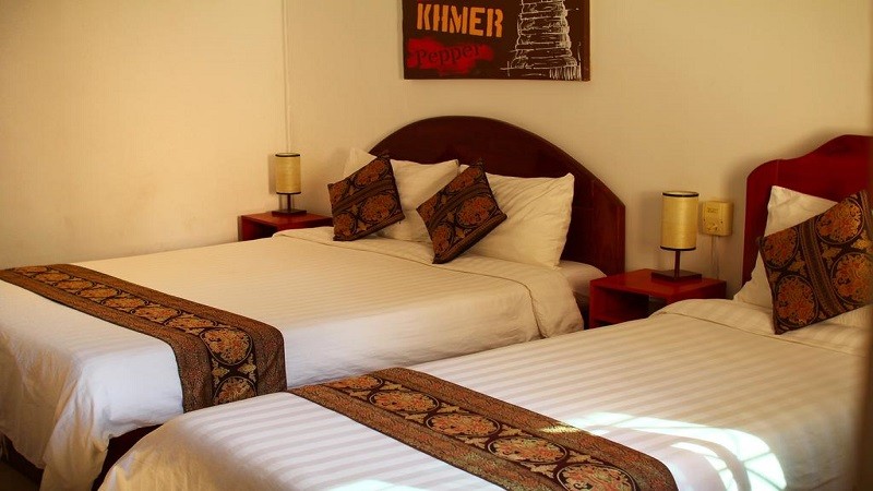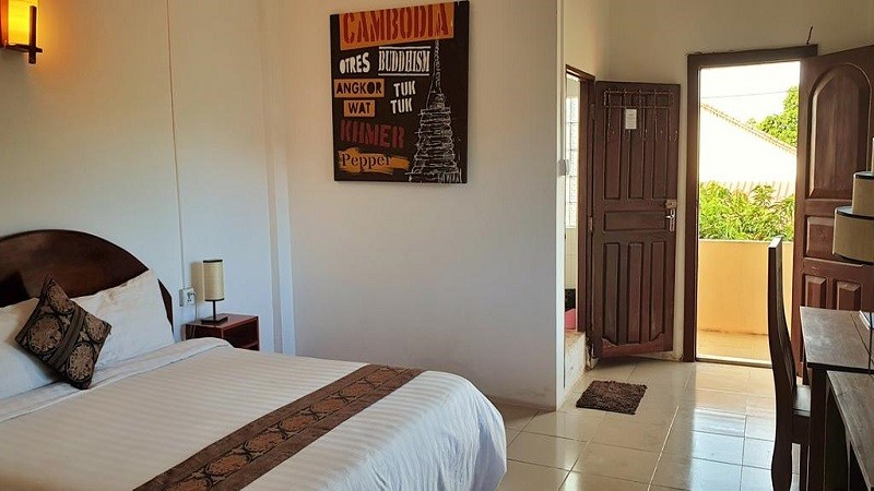 I stayed here for 3 nights, and would have stayed longer if I could. The rooms are massive and very clean, the bed very comfortable and the pillows were honestly like clouds. When I checked in Alecia and Simon were both very friendly and extremely helpful. Receptionist Sokea is great too. Everyone is great to talk to and really go out of their way to help with anything. The WiFi is also very strong which is rare in kampot. Amazing value for money, and there is also some very cute cats 🙂 Would highly recommend to anyone passing through