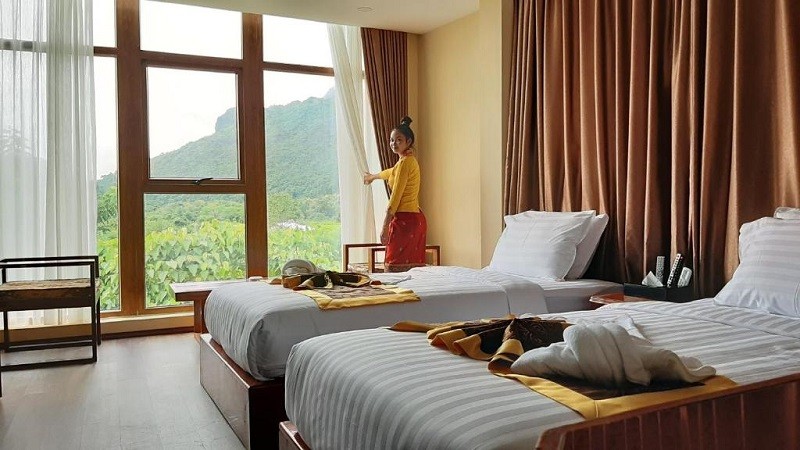 Lisha Grand Hotel is a comfortable mid-range luxury option among the popular Vang Vieng hotels. Located in Ban Muangsong, about 2 km from Vang Vieng town center, the hotel offers a quiet atmosphere while still being convenient for exploring the area.